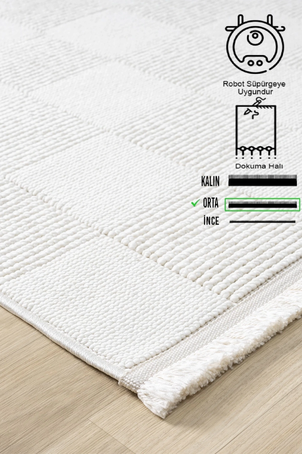 • -Düz saçağı detayları ile estetik bir görünüm sunarken, halının formunu korur ve uzun süreli kullanım için idealdir.